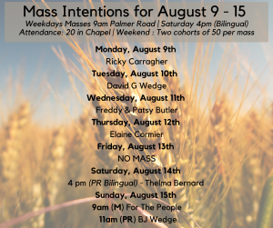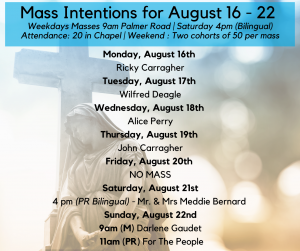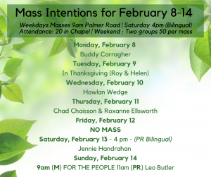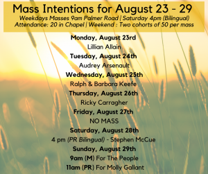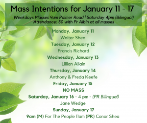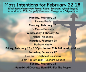 2. For the sick: Donald McKenna, Edna Kinch, Wayne Gallant, Joey Arsenault, Most Rev Richard Grecco – May they turn to the Lord daily, in prayer for their healing.