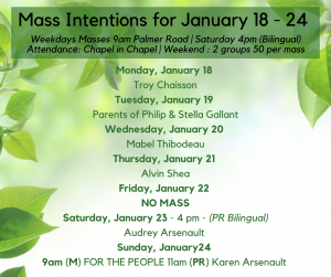Confessions during Holy Week has been cancelled due to the Covid-19 circumstances. The deadline date to make your Easter duties is Trinity Sunday, June 7. Père Albin Arsenault